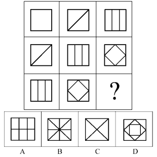 每道题给出一套或两套图形,要求应试人员通过观察分析,找出图形排列的规律,选出符合规律的一项。