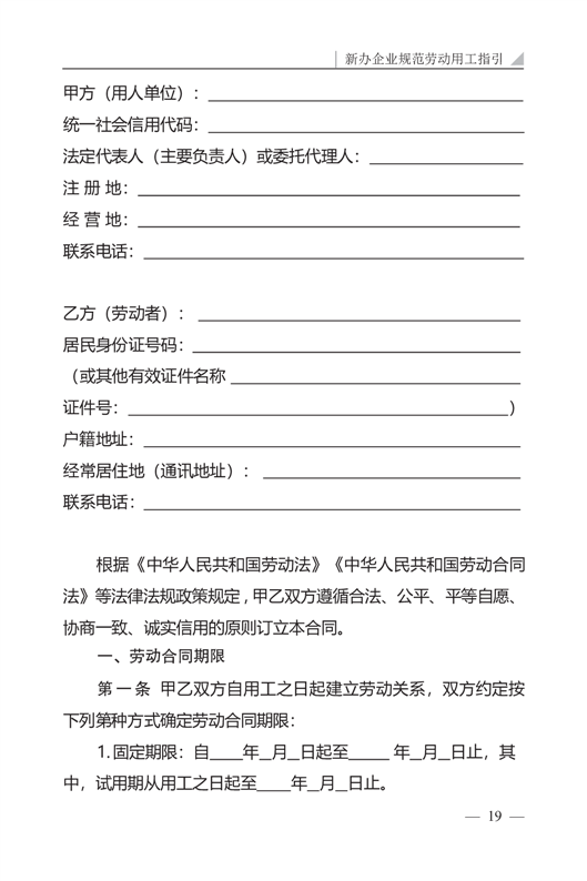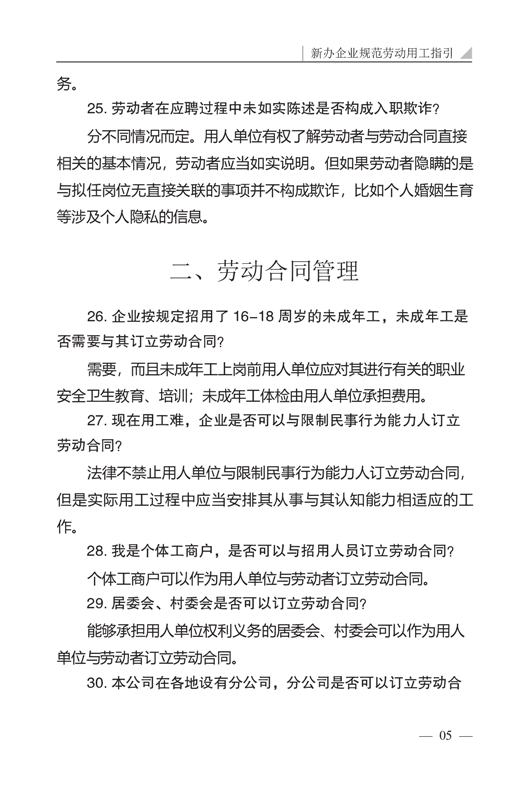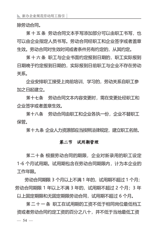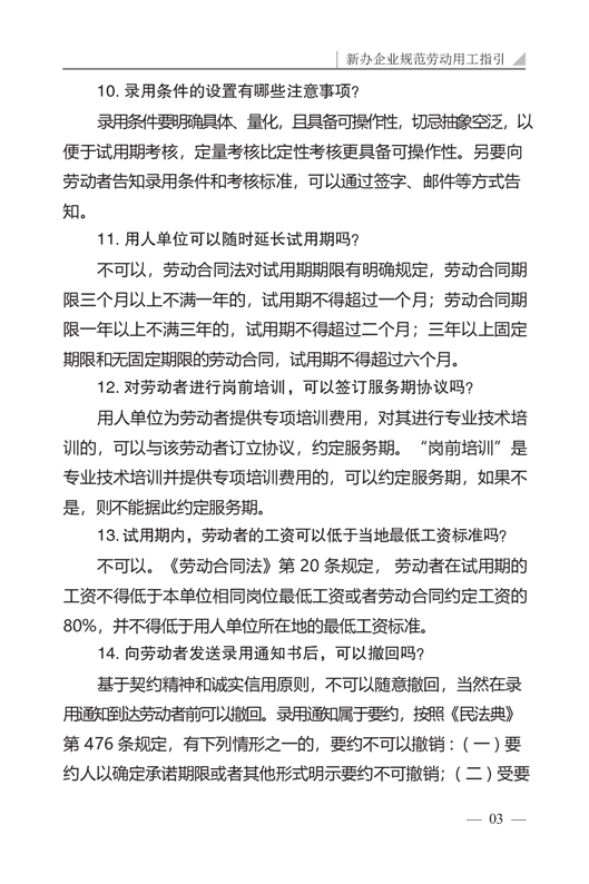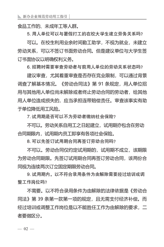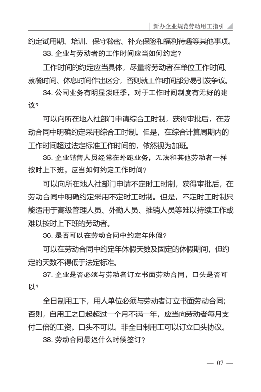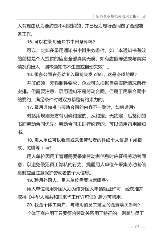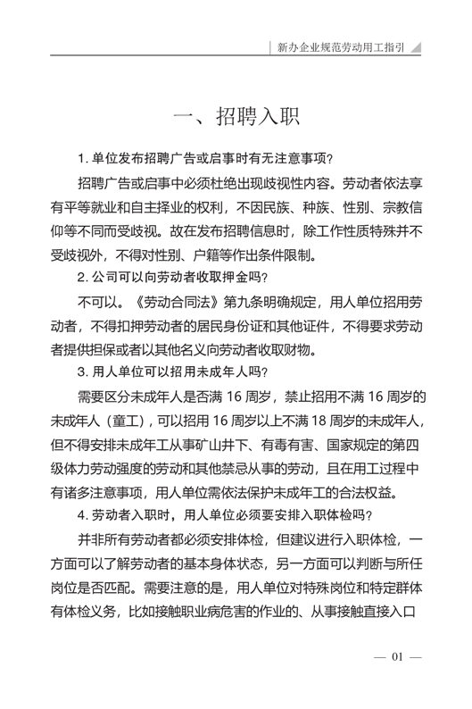 新办企业规范劳动用工指引