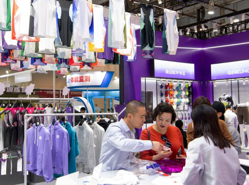 1月4日,观众在第五届中国马拉松博览会现场挑选体育运动服装。当日,为期三天的第五届中国马拉松博览会暨2024福建省路跑产业博览会在厦门国际会展中心开幕。新华社记者 魏培全 摄