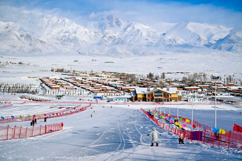 近年来,新疆依托阿尔泰山、天山丰富的冰雪资源优势,推动冰雪产业集聚发展,致力于打造世界级冰雪运动和冰雪旅游目的地,建设了一批高等级滑雪场,吸引大量国内外游客,使冰雪资源逐步转化为经济效益。这是游客在新疆温泉越野滑雪场滑雪。这里是国家越野滑雪集训基地(2024年12月22日摄)。新华社记者 陈朔 摄
