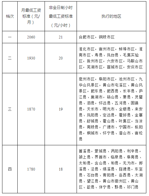 附件:全省各地最低工资标准表安徽省人民政府办公厅