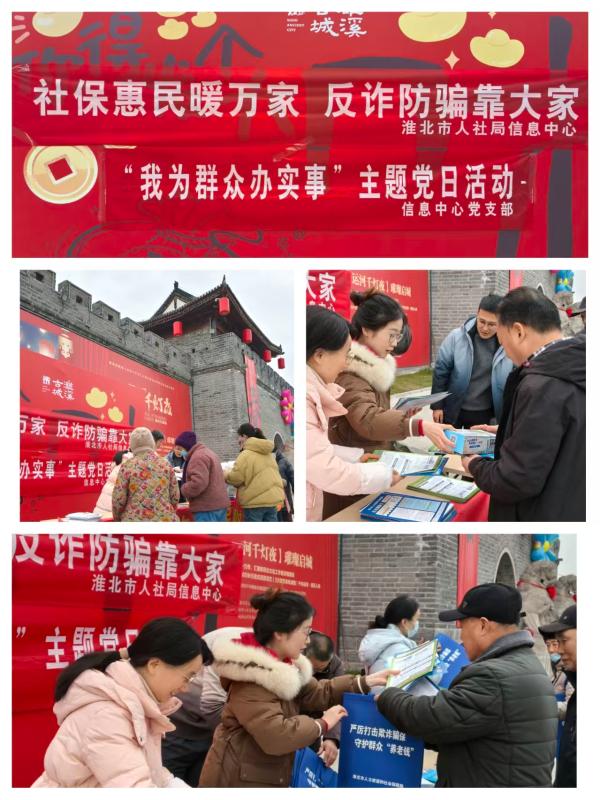 1月4日下午,局信息中心组织党员干部、业务骨干赴濉溪古城,以“社保惠民暖万家,反诈防骗靠大家”为主题开展“社会保障卡惠民服务月”宣传活动,并同步开展“我为群众办实事”主题党日活动,以实际行动擦亮“社会保障卡,心系你我他”党建品牌。