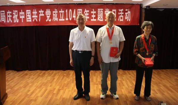 徐从亮局长向“光荣在党50年”老党员代表颁发纪念章,对“优秀党务工作人员”进行表彰,举行了向“政治生日”党员赠书仪式。