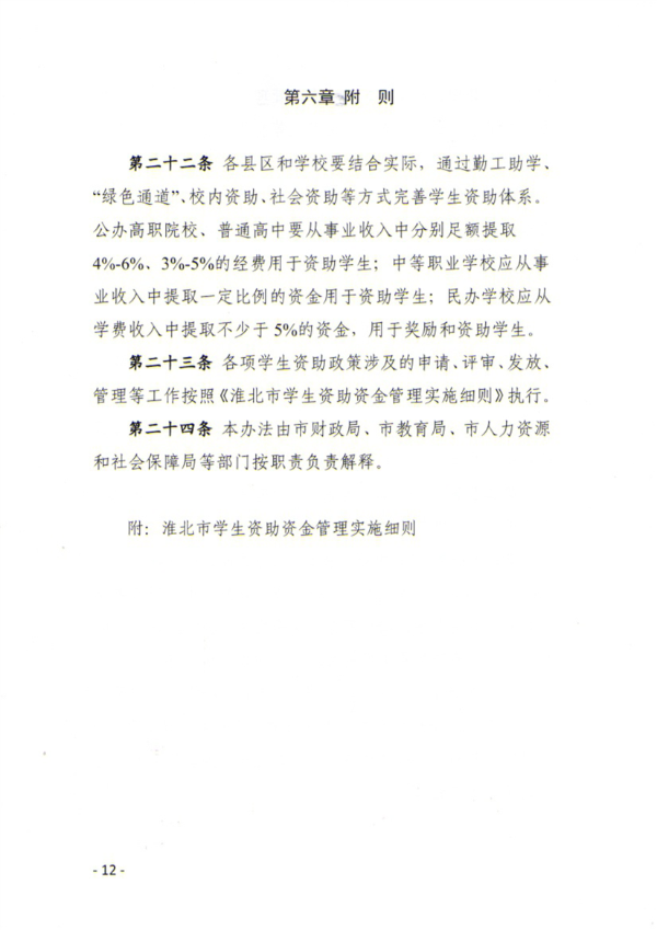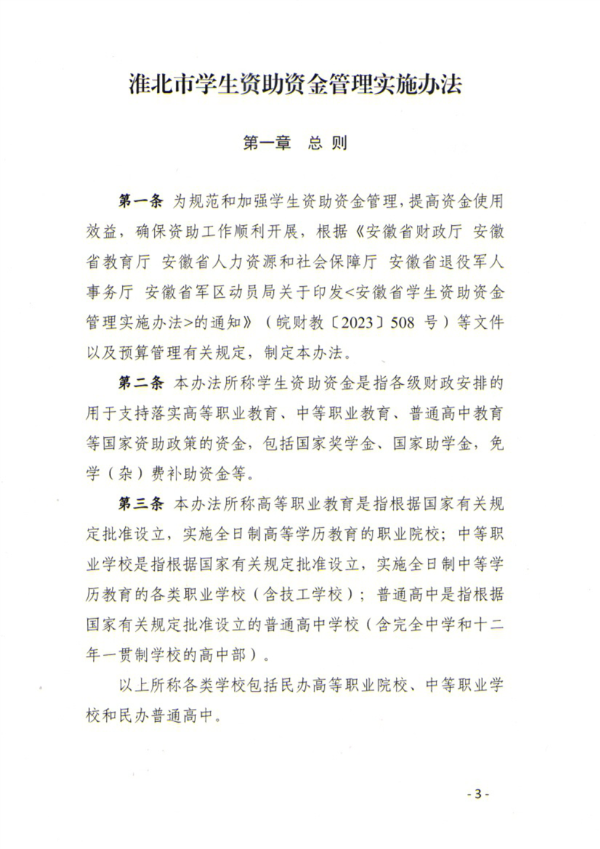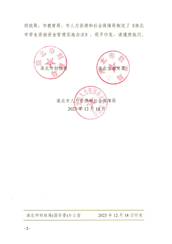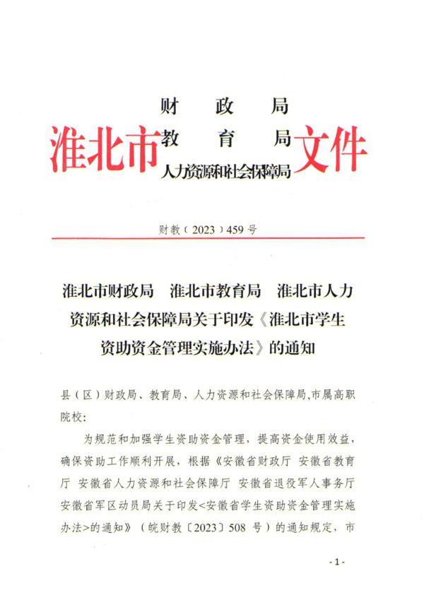 淮北市财政局淮北市教育局淮北市人力资源和社会保障局关于印发《淮北市学生资助资金管理实施办法》的通知